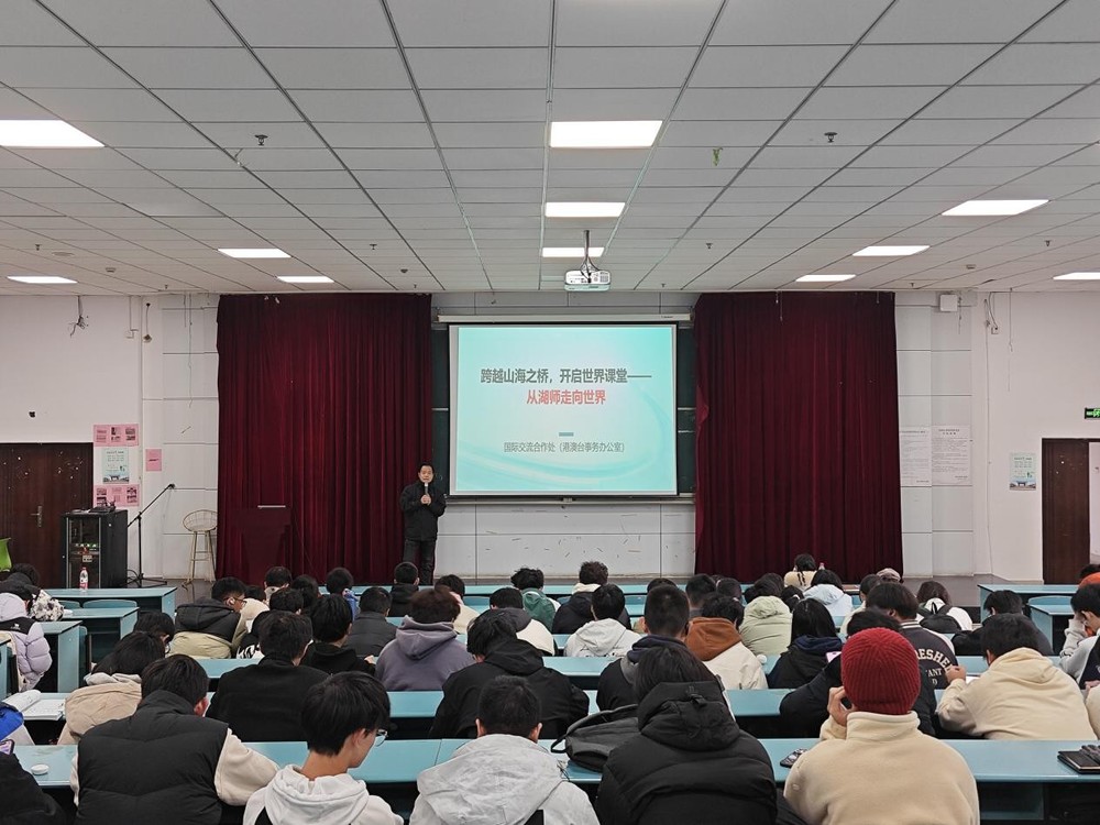 为帮助2025级新生拓宽国际视野、了解跨学科交流机遇、规划国际化成长路径,11月21日下午,信息工程学院特邀学校国际交流合作处副处长曾万泉老师,在31幢222教室为全体新生带来了一场题为 “跨越山海之桥,开启世界课堂——从湖师走向世界” 的专题讲座。学院2025级全体新生200余人参与讲座。