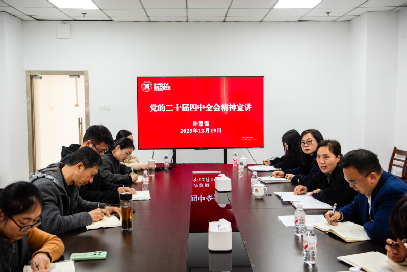 为深入学习贯彻党的二十届四中全会精神,切实把思想和行动统一到党中央决策部署上来,12月19日下午,我校党委书记许慧霞一行来院进行党的二十届四中全会宣讲,学院全体党委成员、支部书记、教师代表参会。