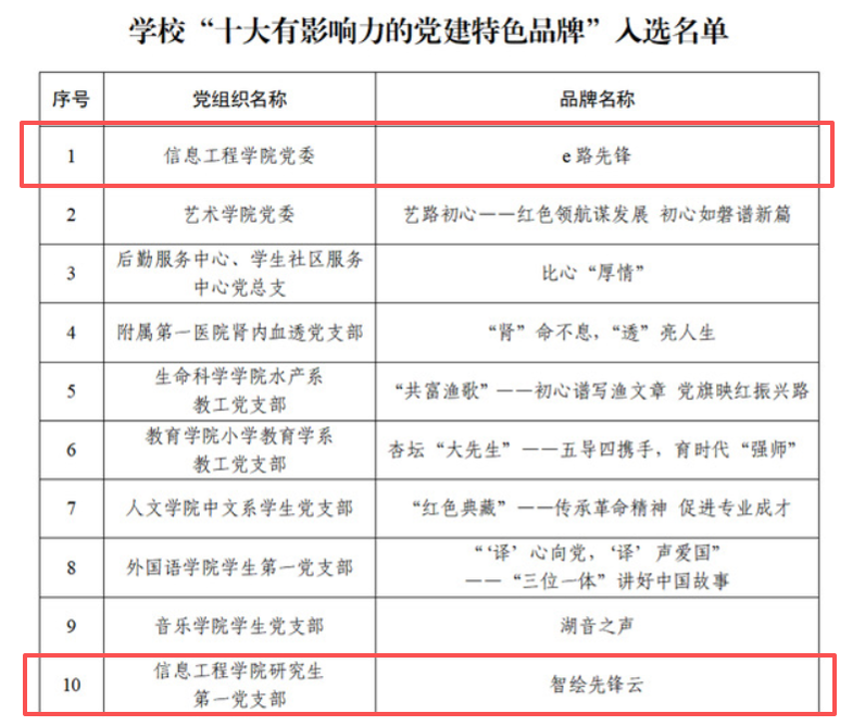 近日,学校“十大有影响力的党建特色品牌”评选活动圆满结束,学院党委“e路先锋”、研究生第一党支部“智绘先锋云”项目脱颖而出,获评校“十大有影响力的党建特色品牌”。